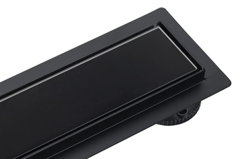 Odpływ liniowy podłogowy Balneo G-Drain Next Double Dark 90 cm czarny z panelem ze szkła hartowanego z niskim syfonem i głębokim osadnikiem